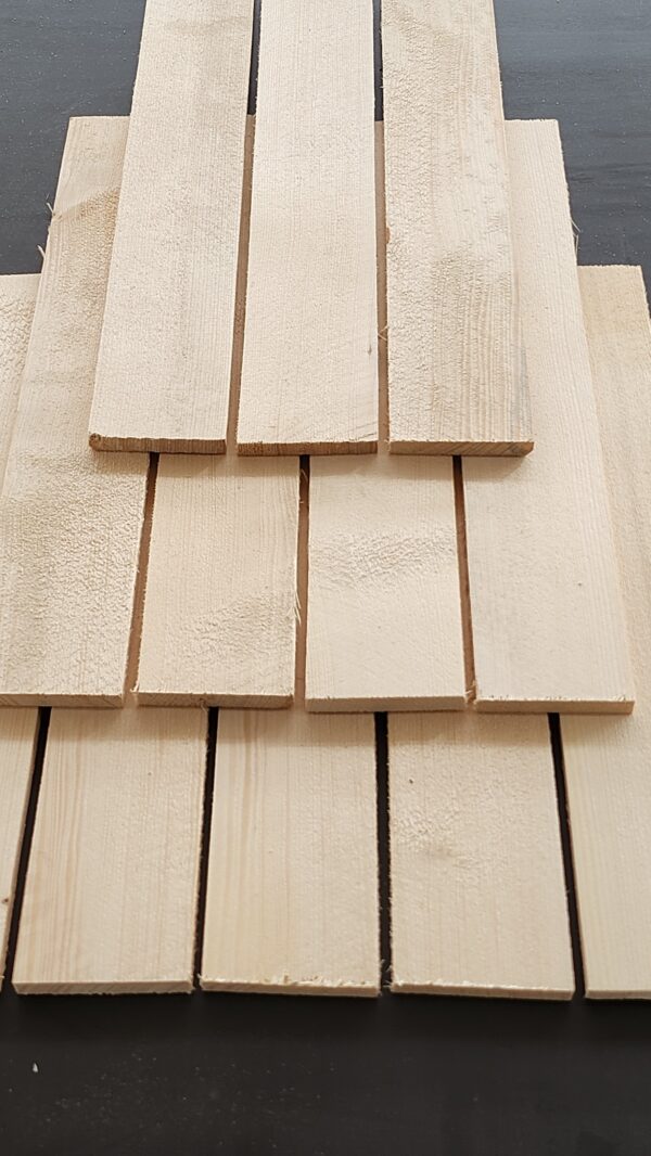 Katusekimm. Lõigatud okaspuust. Kiilukujuline, peenem ots 3-5mm, jämedam ots 13-15mm. Pikkus 60cm. Immutamata. Sirge ots.